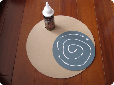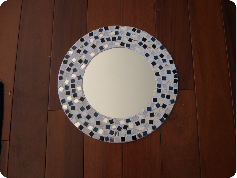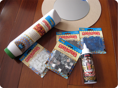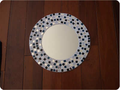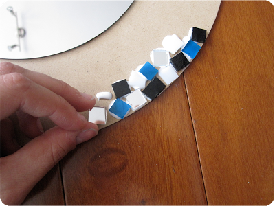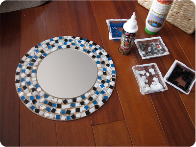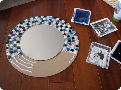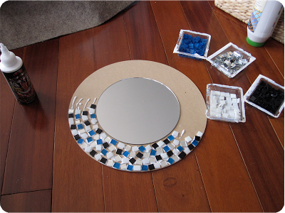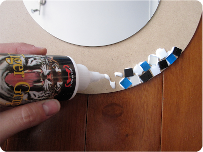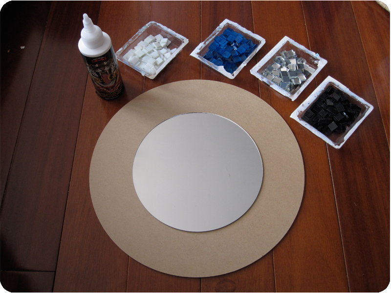 Step 1: Glue mirror to backing board. Make sure to place it in the centre.